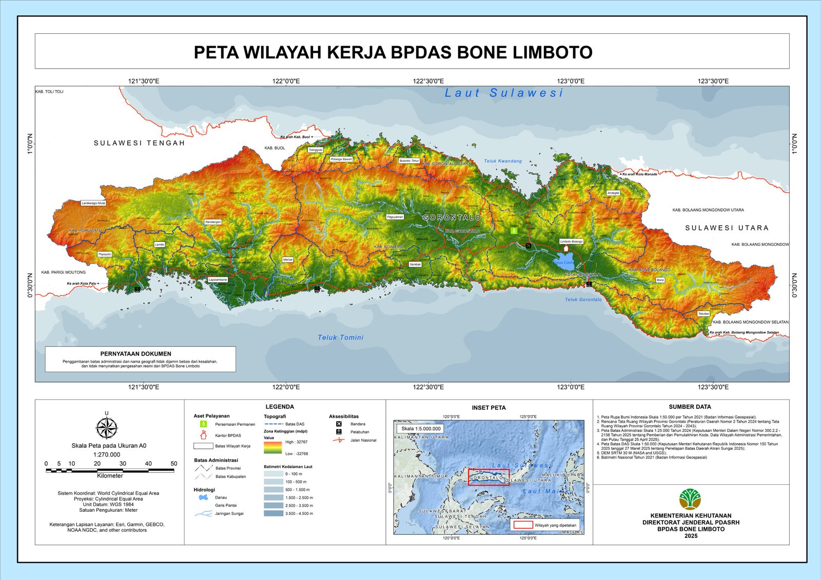 Secara geografi wilayah kerja BPDAS Bone Limboto Provinsi Gorontalo berbatasan dengan :